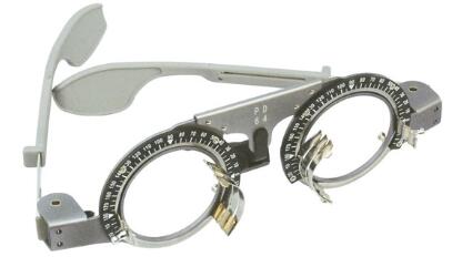 1、試鏡架應能使位于患者眼前的兩個鏡片支架準確定位,每個鏡片支架至少應能同時安裝三個鏡片,并分別處于鏡片支架幾何中心連線上分隔的空間內。